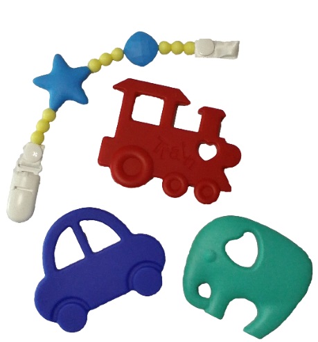 - Train, Car, Elephant Teethers + Free Teether Holder - Food Grade Silicone - FDA approved, BPA free - No harmful chemicals - Safe for baby